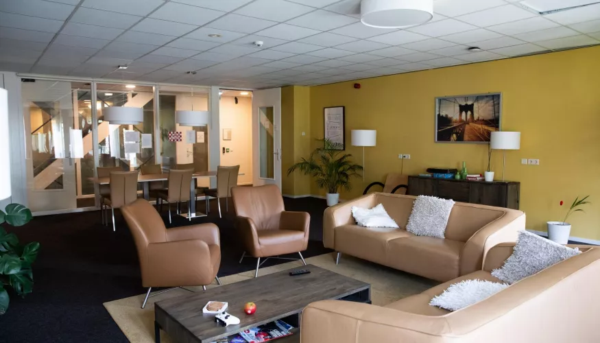 Je krijgt een lichte en comfortabele studio met een eigen badkamer en een keukentje in de woon-/slaapkamer. Er zijn drie woongroepen met een gezamenlijke woonkamer en keuken waar je met elkaar kookt, eet en gezellig samen bent.