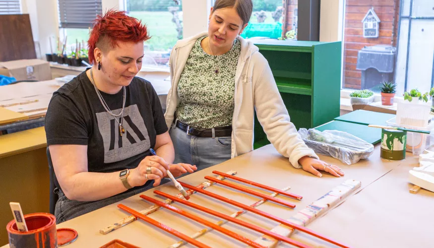 Op het terrein van de Eikenhorst kun je niet alleen wonen, maar ook werken en je talenten verder ontwikkelen. Je kunt aan de slag in onze timmerwerkplaats en mooie dingen maken of oude meubels opknappen voor de verkoop. Ook als je liever productiewerk doet, zit je hier goed. Momenteel werken we samen met een bakkerij en het wegen en verpakken van diverse bakmixen zou zomaar jouw werk kunnen worden. Liever buiten bezig? Dan kun je helpen bij het onderhoud van het terrein of aan de slag in de moestuin. Klik hier voor Werk | Leer | Beleef Veluwe.